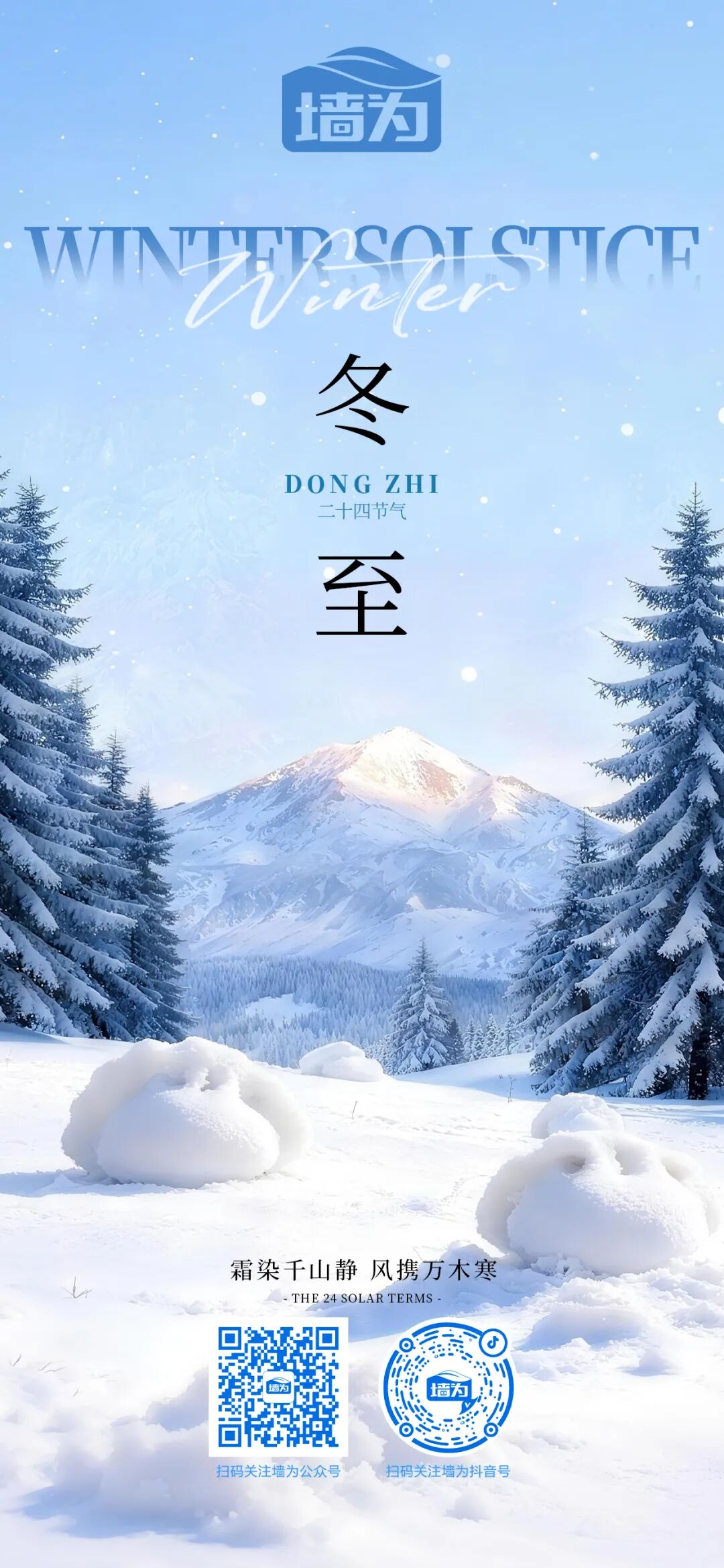 值此佳节,墙为公司向合作伙伴与新老客户致以诚挚祝福,愿大家冬至安康、阖家团圆,岁岁欢愉,事事顺意!
